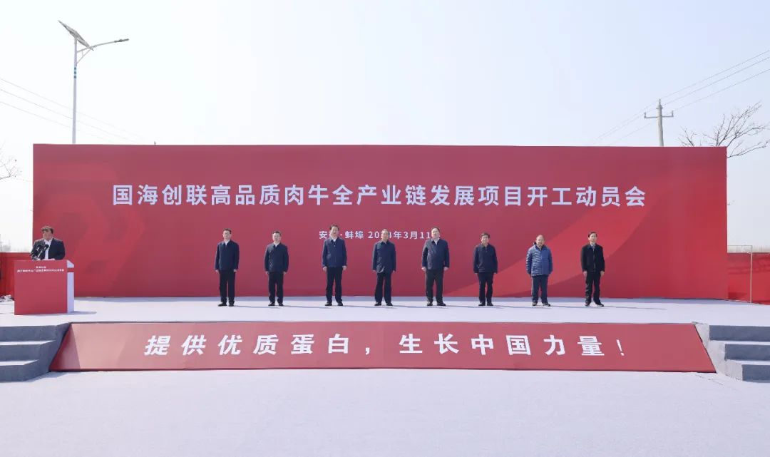 3月11日上午,國(guó)海創(chuàng)聯(lián)高品質(zhì)肉牛全產(chǎn)業(yè)鏈發(fā)展項(xiàng)目開工動(dòng)員會(huì)在懷遠(yuǎn)縣舉行。副省長(zhǎng)張曙光宣布項(xiàng)目開工,市委書記黃曉武致辭,省政府副秘書長(zhǎng)金宗順,省農(nóng)業(yè)農(nóng)村廳廳長(zhǎng)汪學(xué)軍,省農(nóng)墾集團(tuán)總經(jīng)理張其廣,省農(nóng)業(yè)農(nóng)村廳副廳長(zhǎng)湯洋,國(guó)海創(chuàng)聯(lián)實(shí)業(yè)集團(tuán)有限公司董事長(zhǎng)閆濤,國(guó)家肉牛牦牛產(chǎn)業(yè)技術(shù)體系首席科學(xué)家曹兵海,市領(lǐng)導(dǎo)王慶武、吳永彬、喬樹偉,淮北市、亳州市、宿州市、阜陽市、淮南市、滁州市、六安市政府分管負(fù)責(zé)同志出席。蚌埠國(guó)控集團(tuán)黨委書記、董事長(zhǎng)陳建功和集團(tuán)黨委副書記、副董事長(zhǎng)、總經(jīng)理劉冰參加動(dòng)員會(huì)。