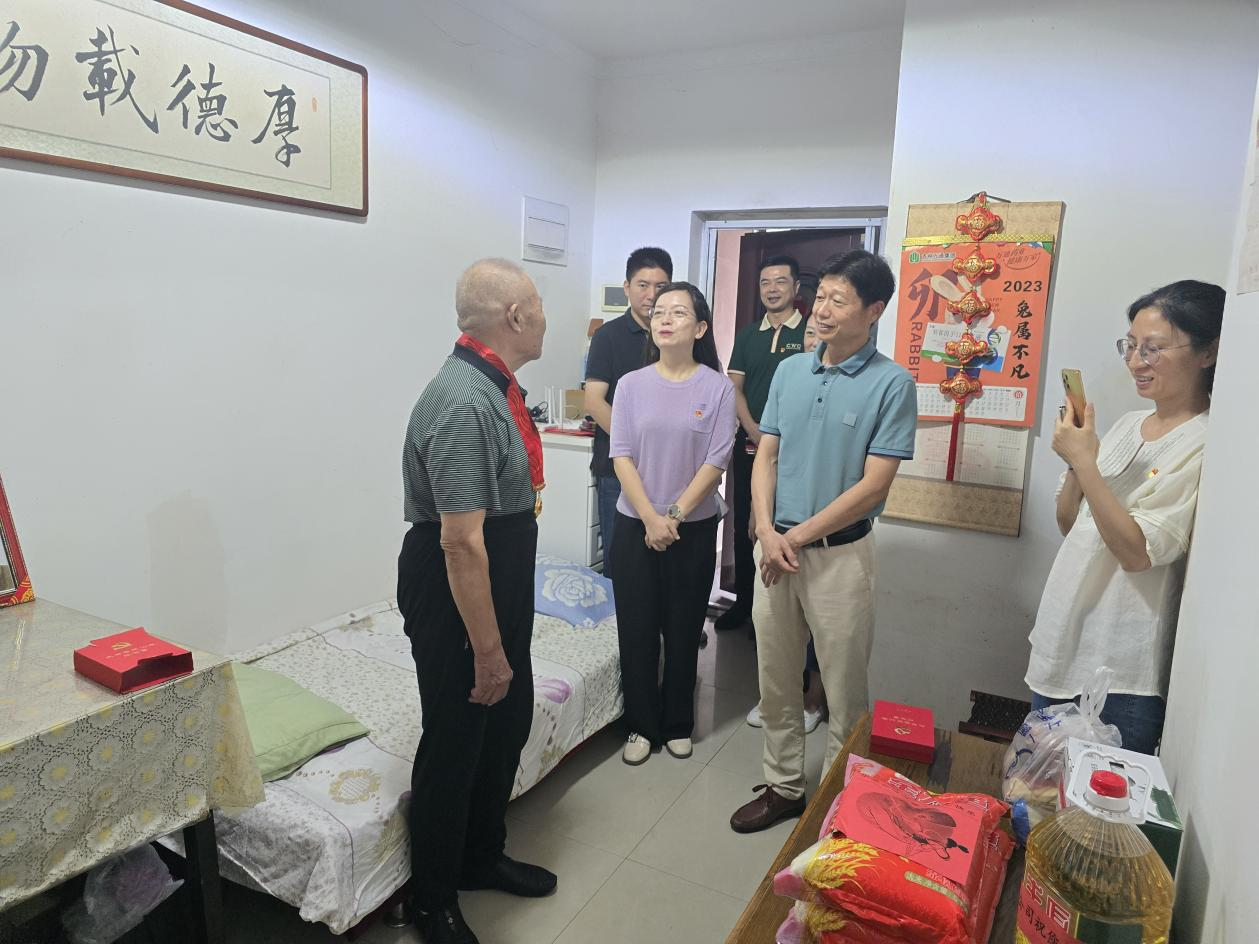在90歲高齡老人徐多貴家中,慰問(wèn)團(tuán)一行與老人親切交談,關(guān)切地詢問(wèn)老人的身體、飲食起居,了解日常生活中遇到的困難和幫扶需求,囑咐老人要注意早晚溫差,做好防寒保暖,并將節(jié)日的祝福和慰問(wèn)品送給老人。