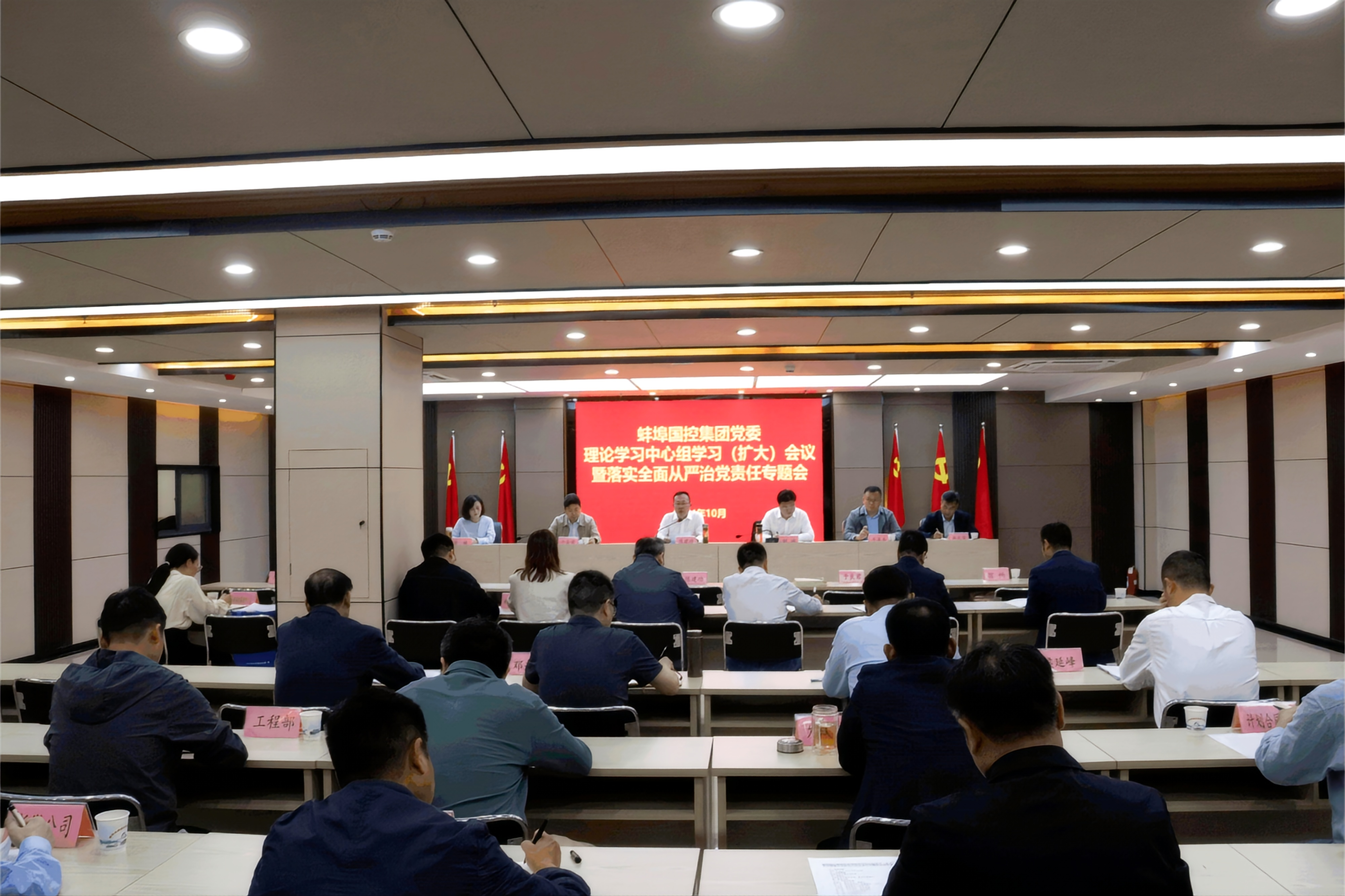 10月16日下午,市國(guó)控集團(tuán)黨委召開理論學(xué)習(xí)中心組學(xué)習(xí)(擴(kuò)大)會(huì)議暨落實(shí)全面從嚴(yán)治黨責(zé)任專題會(huì)。集團(tuán)黨委書記、董事長(zhǎng)陳建功主持會(huì)議并講話。集團(tuán)領(lǐng)導(dǎo)班子成員、各部門負(fù)責(zé)人,水投集團(tuán)領(lǐng)導(dǎo)班子成員、各部門負(fù)責(zé)人及子公司負(fù)責(zé)人參加會(huì)議。