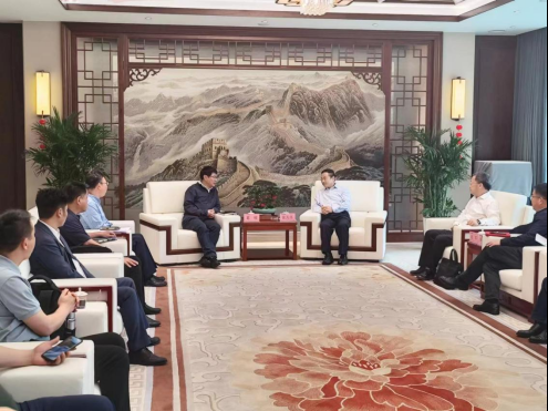 參觀結(jié)束,葛銳與天能控股集團(tuán)董事長張?zhí)烊尉桶霾菏信c天能集團(tuán)戰(zhàn)略合作進(jìn)行座談,圍繞氫能汽車項(xiàng)目,雙方進(jìn)行了深入的交流,初步達(dá)成項(xiàng)目合作意向,雙方表示將進(jìn)一步推進(jìn)相關(guān)工作落實(shí)、盡快推動相關(guān)項(xiàng)目落地。