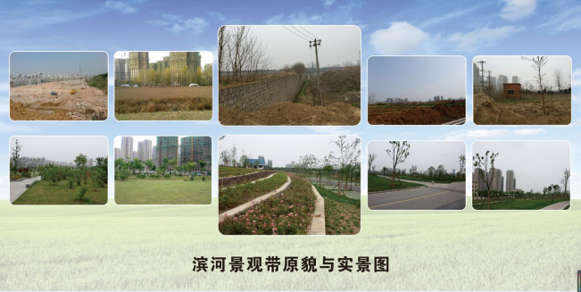 該項(xiàng)目位于蚌埠市淮上區(qū),南起淮北大堤堤頂,北至濱河路邊,為狹長(zhǎng)型地塊,東西長(zhǎng)約4.3公里,綠地景觀面積49萬(wàn)平方米。項(xiàng)目建設(shè)之前,地塊上有附近村民自種的莊稼、小菜園,也有野生的雜草灌木,景色荒蕪蕭條。2013年,市委市政府要求對(duì)淮河北岸進(jìn)行環(huán)境整治,為人民群眾提供一個(gè)環(huán)境優(yōu)美,悠閑舒適的休閑場(chǎng)所,由城開(kāi)公司負(fù)責(zé)項(xiàng)目建設(shè)。該項(xiàng)目采用工程總承包中設(shè)計(jì)施工一體化(DB)模式招標(biāo),由中標(biāo)人負(fù)責(zé)項(xiàng)目的設(shè)計(jì)施工。2014年11月完成項(xiàng)目的建設(shè)任務(wù),為廣大市民營(yíng)造了一個(gè)以人為本的現(xiàn)代濱河休閑公園、綜合性景觀走廊,綠化植物有銀杏、香樟、桂花等,植物層次豐富,物種多樣,四季變化繁復(fù),覆蓋率在90%以上,展現(xiàn)了林成蔭、樹(shù)成群、草成片、花成叢的優(yōu)美景觀。